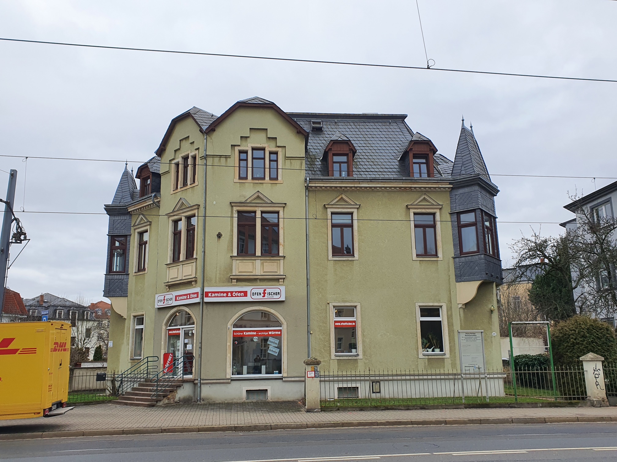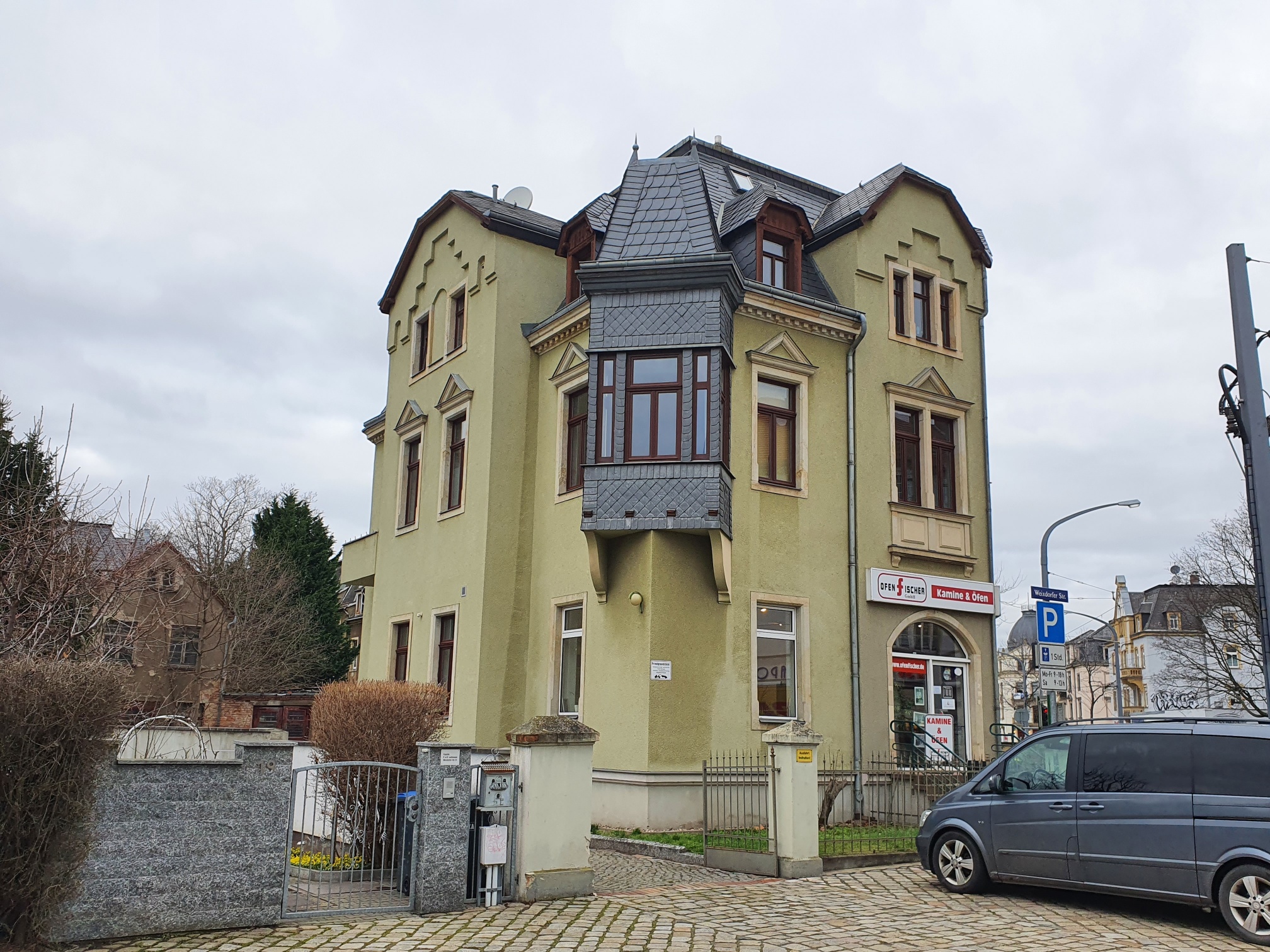 Das 1900 gebaute, unter Denkmalschutz stehende, freistehende Mehrfamilienhaus befindet sich im Stadtteil Trachau.